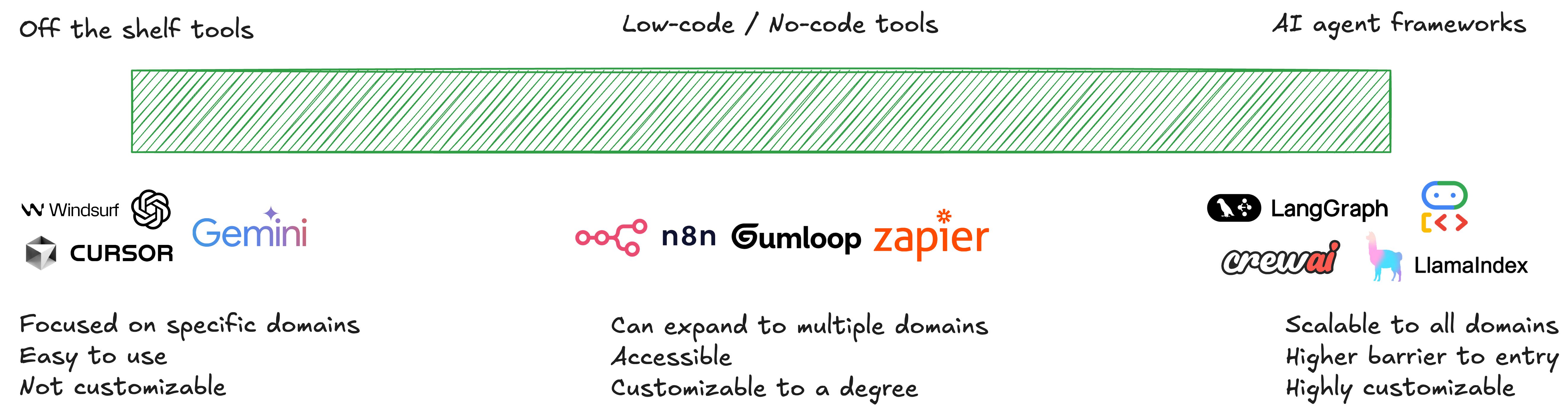 Una vez identificada la necesidad de emplear un agente de IA, el siguiente paso es entender el ecosistema de herramientas existentes en el mercado para su implementación. El mismo es dinámico y cambia rápidamente (año 2025). En cualquier caso, pueden organizarse en los siguientes grupos:
